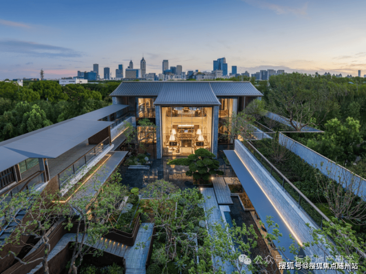 合院产品当代转译。采用现代东方极简线条、大面积玻璃幕墙和层层挑檐,重新诠释东方院落精神,实现了“院中有景,室内敞亮”,让传统居住智慧在当代焕发新生。