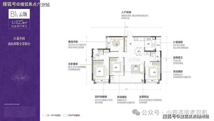 139㎡:空间感强,主卧带270°转角飘窗,采光视野俱佳;