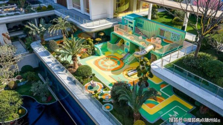 是的,它是把连廊、架空层、下沉式庭院打通后一体化设计,才有了这么一片「地标级童玩区」。以后孩子们天天都会呼朋唤友来这里,这可比住豪宅都更有骄傲感。