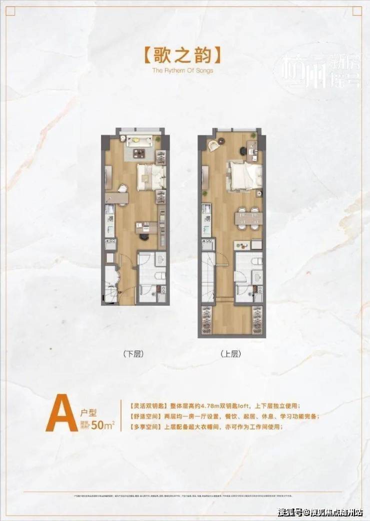 产品设计的难点在于,当前公寓产品同质化严重,投资和自住性产品力都不足。针对以上痛点,产品设计上做到了面积50㎡左右,层高4.78m的双钥匙户型。户型布置兼顾了青年刚需自住的产品诉求以及投资灵活多变的考量,达到了舒适人居品质和现代生产方式平衡的目的。