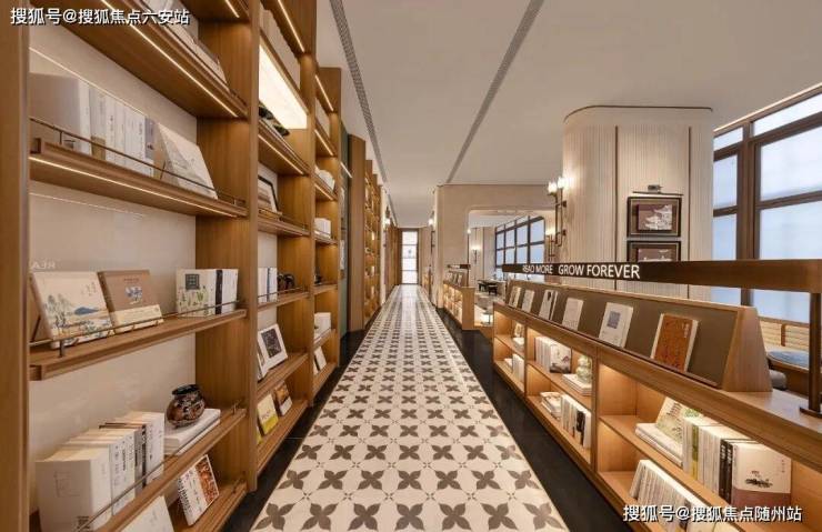 比如首开的1号楼,架空层就像一座陈列着书籍的美学空间,雪山兰等奢石铺陈,搭配主题logo拼花石材、叠级吊顶等设计,尽显高阶的温润感。