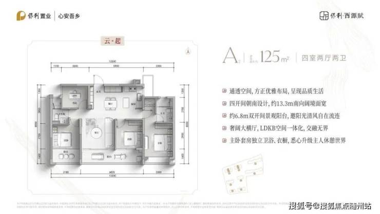 西源赋首开7、8幢,建筑面积约125㎡/139㎡人文奢宅,纯粹四房改善产品。