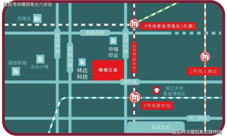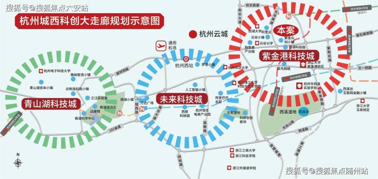 项目地处紫金港科技城东部,直距西溪湿地约6.5公里、西湖群山约8.7公里,既是自然生态与城市繁华的过渡带,更是城西科创大走廊的“桥头堡”。这一区位承接了杭州向西发展的核心政策红利,周边聚集了阿里云总部、菜鸟网络、浙大网新等头部企业,形成数字经济、智能制造、生命健康三大产业集群,为入驻企业提供产业链协同机遇。