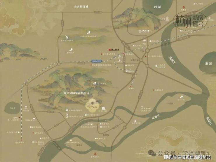 背靠黄公望国家级森林公园,面朝富春江,周边森林覆盖率达 96.5%,负氧离子浓度高,毗邻黄公望隐居地,自然景观稀缺。这种 “背山面水” 的格局兼具生态价值与文化底蕴,居住舒适度远超城市高密住宅。