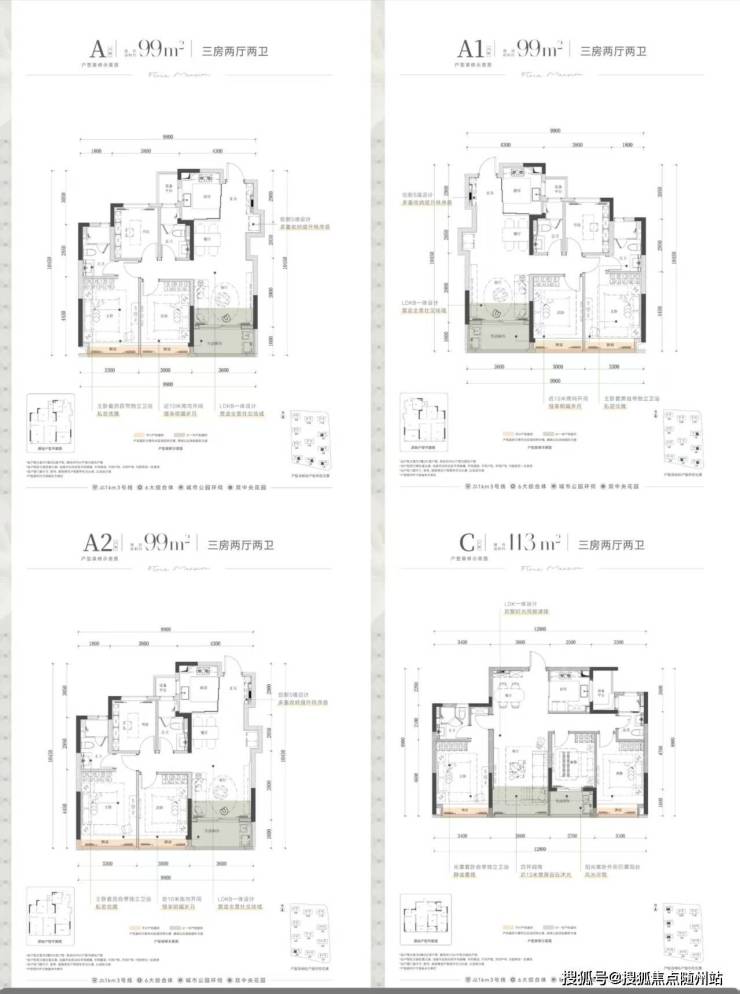 建面约99㎡的三房两卫户型,动静分区,采用三开间朝南设计,还可以放下双开门冰箱哦~配备双飘窗和大阳台,保证了室内通风明亮,同时两个卫生间的设置,解决了早上排队使用的问题。