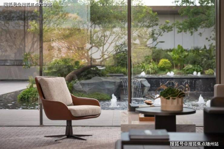 剪水盈波,树影摇曳,大面落地玻璃窗的构筑满载自然之意,以景观内化的方式,模糊室内外的界限,营造出更有意义与深度的空间场景。虽居室内,亦能心怀山水的意境。