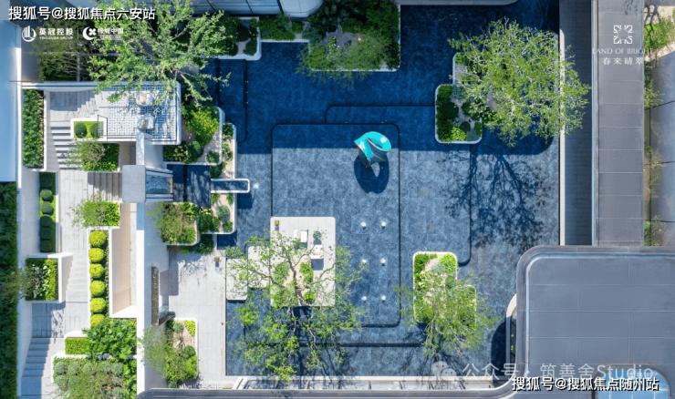 立体的水景庭院,层次分明的绿化、别致的跌水瀑布、主题鲜明的雕塑、以及休憩放松的平台,这些元素巧妙搭配,共同描绘出一幅生机勃勃、流动不息的山水长卷。