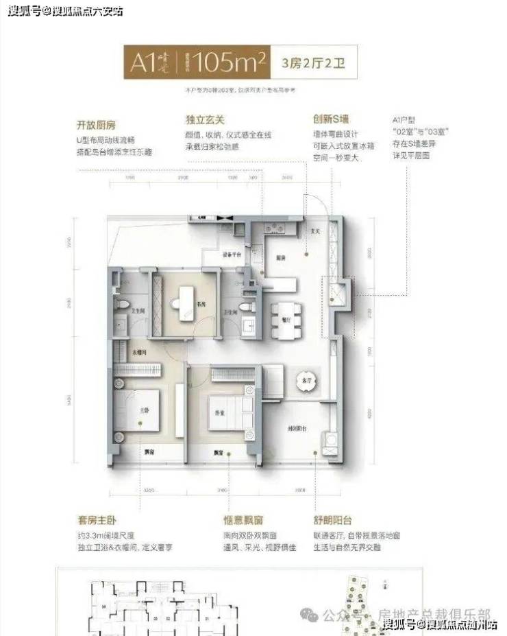 无界客厅,流畅洄游动线,畅享无间互动,打造家的温馨欢乐场。约12.6米南向四开间,客厅卧室每个角落充满温馨。互动式餐厨,开放式空间容纳6-8人,共聚温馨时刻。观景阳台,拓宽视野,开启无限生活境界。