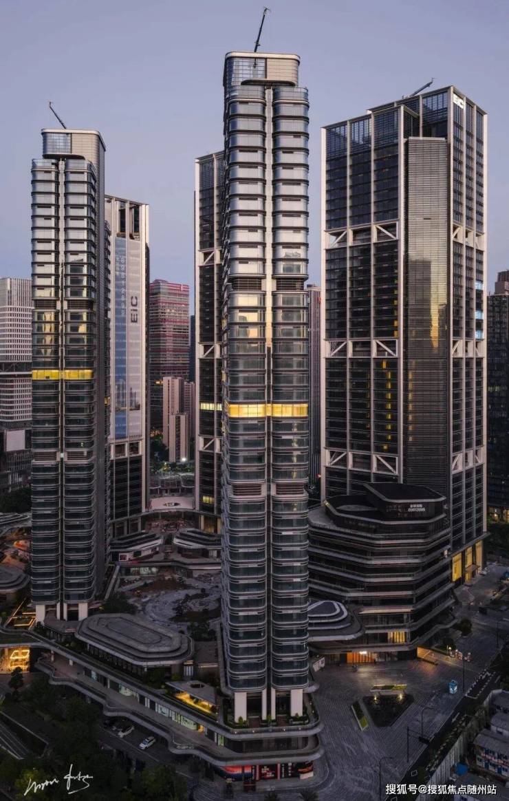 更值得关注的是,EIC由英国高技派大师福斯特的Foster+Partners操刀设计,景观设计AECOM、室内设计HBA、照明设计BPI共同加持,从建筑轮廓到空间细节,每一寸都镌刻着“世界级标准”。其7栋最高约200米的摩天楼宇集群,沿“文化景观轴”串联起办公、商业、住宅、公共广场等多元业态,统一的裙楼设计模糊了“内外”界限,让城市与生活的边界更自然流动。