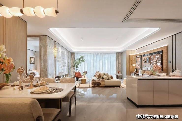入口处设有约40米星级酒店式归家大堂,搭配罗汉松、朴树及潮水雕塑,营造仪式感。