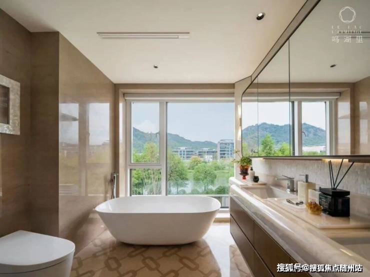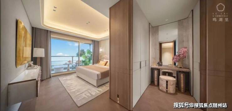 2个套间更不用说,比如主卧,套房内仅卧室面积就在40㎡左右,加上超大的走入式衣帽间,以及自带双台盆+浴缸的主卫,妥妥的酒店总统套房规制,南向双开间阳台更在视觉上抬升了室内的朗阔感。