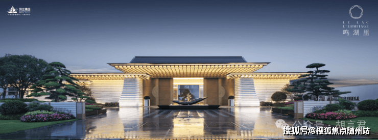 它的奢华带着现代宋韵的细腻:金属面泛着温润的光泽,中式屋檐的构件精巧耐看,白玉大门如城墙般巍峨,宏伟与精致在此交融,就像一枚精心雕琢的玉簪,恰好点缀在湘湖这方“美人”的鬓边。