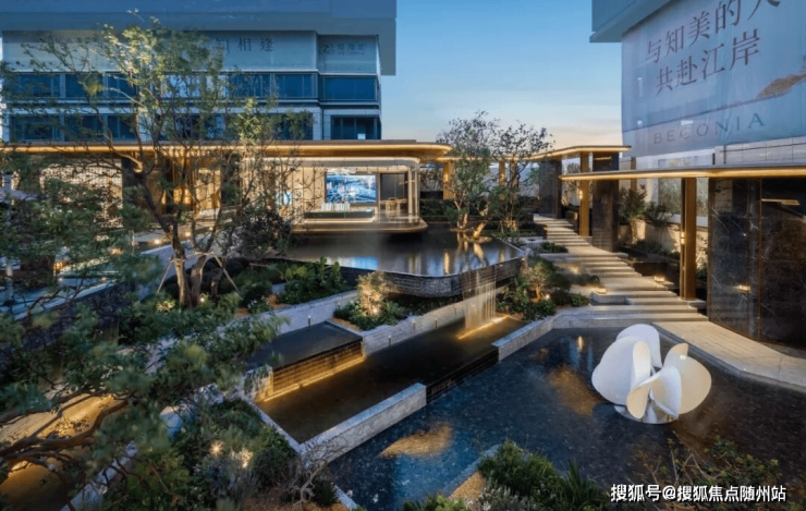 再譬如,现在很多项目都将首层抬高,但仅仅为抬高而抬高,绿城·知海棠则充分利用抬地。一方面做出立体森林景观,叠山理水,水波款款,枝繁叶茂间,浮岛游弋;另一方面,各类动线相互穿插,拾级而上,如同丝带般延展,“未来版西湖十景”渐次展开,无界泳池、下沉庭院、星光水院、疗愈花园等生活场域,人随景动。