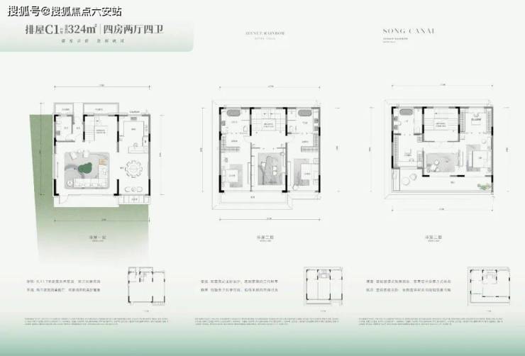 建面约324㎡排屋,单层的南向开间更是做到了约11.7米。