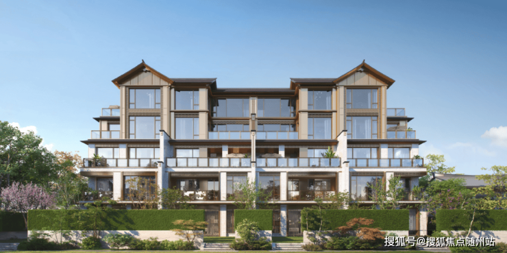 项目由3幢20F高层和3幢5F四联排屋组成,容积率2.5,占地面积约1.4万方,整体体量不大,高层共152套,排屋仅12套。产品整体风格依然是建发新中式,高层户型面积约199㎡,排屋户型面积约373-378-447㎡