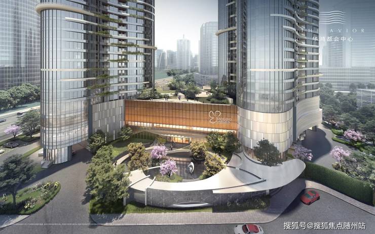 项目占地面积约12456㎡,总建筑面积高达约9.5 万㎡,容积率6.0,绿化率20%;整体由 A、B 两座27 层流线型双子塔楼组成,总户数仅123 户,保证了圈层的绝对纯粹。