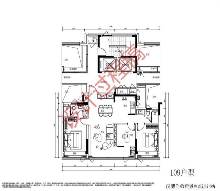 建面约109方户型图设计过程稿