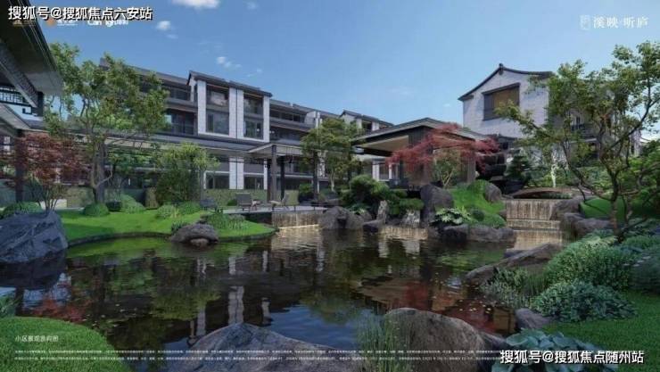 由贝尔高林担纲园林设计,以“新中式园林”为主题,打造四水归堂、叠水景观等元素,融合茶田微景观与松石意境,实现“一步一景”。