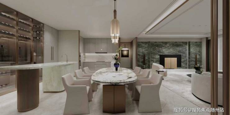项目打破传统“房间叠加”模式,以“社交核、景观轴、科技芯”三大系统重构空间逻辑。500㎡户型打造约120㎡ LDK一体化厅域,适配宴会、沙龙等多元社交场景。