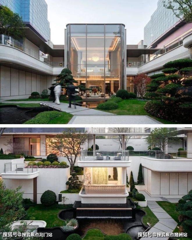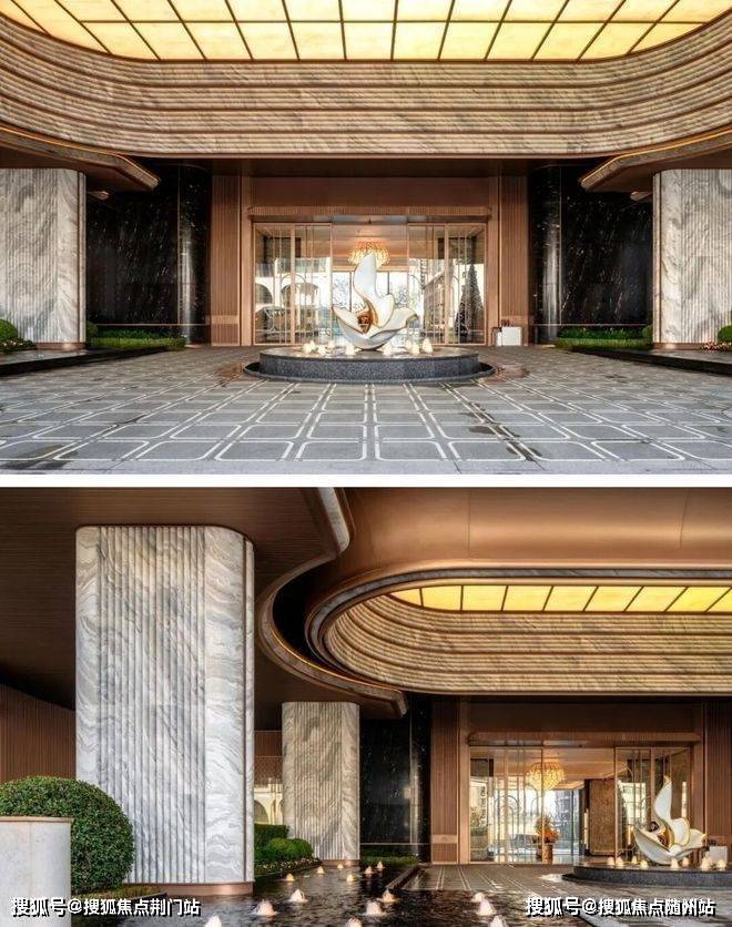 社区主入口打造约 78.8 米宽、9.2 米高的恢弘大门,甄选与奥映鸣翠同款梵高白石材,质感温润大气,搭配古铜色铝板勾勒线条,揉合古典韵味与现代轻盈之美。传统建筑穹顶元素经现代化创新演绎,夜间华灯初上,化作金碧辉煌的艺术藻井;门庭融叠灵动水景、艺术雕塑与珍奢绿植,建筑肌理与自然景观浑然共生,成整条街区的璀璨封面,一眼即见高阶质感