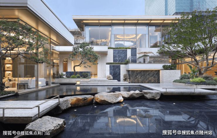 古树玉石、天幕水景,交织出了一派金铺玉户的气象,这是理想生活该有的排场。