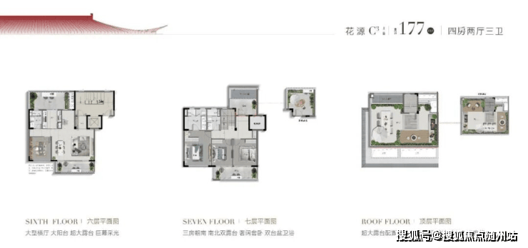 上叠(建面约156-177㎡):屋顶露台+全景窗,尽揽天际线