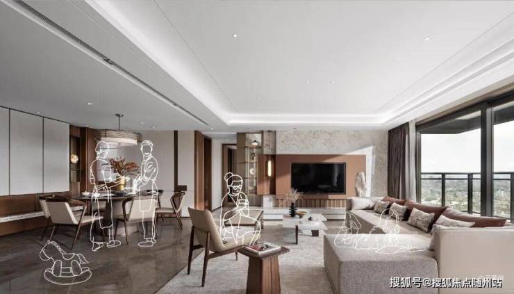 而开放式横厅则让家的尺度无限延伸——父母陪孩子玩耍、亲友围坐畅谈,所有欢聚的片段,都在无界场域中自然流动。