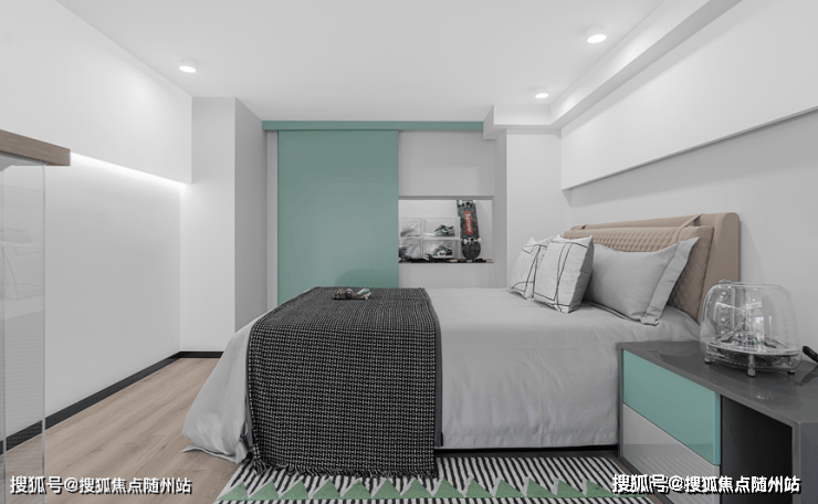 在光影所建构的空间内,将美好以不同方式留下。专为艺术青年打造的线性空间,凝练简洁。牛油果绿皮革长条沙发,哑光质地的特殊材质与透软的浅白地毯形成强烈的视觉冲击,不同材质与颜色的对视感,一如趋势青年冷酷的外表与火热的内心。和而不同,便是他们的生活态度。