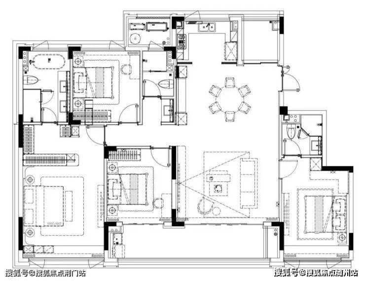 客厅+三卧朝南的结构最适合多人口家庭,男女主人、父母长辈、孩子都可以住朝南的房间,彻底实现“阳光平权”。
