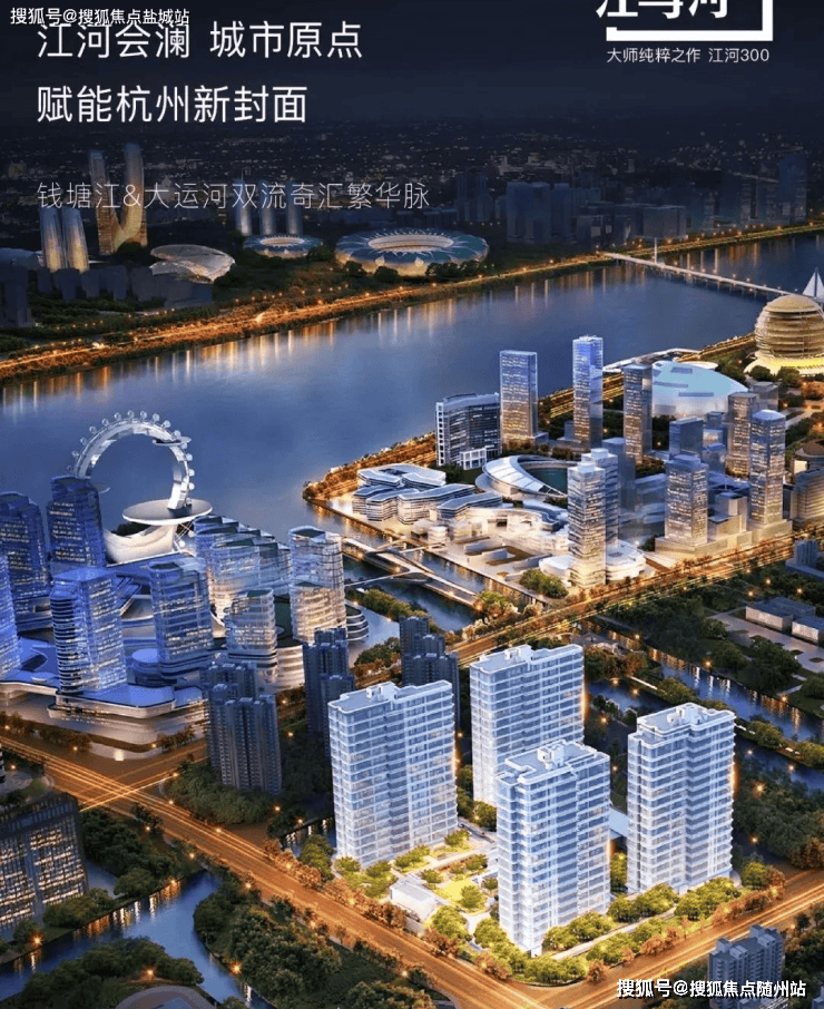 江河汇,是杭州继西湖、日月同辉、莲花碗之后,下一座城市封面,以真正国际化滨水都市理念,打造城市地标摩天轮、IFC国金中心高端购物街区、滨水休闲区、运河景观桥、5A甲级商务区、五星级主题酒店等。