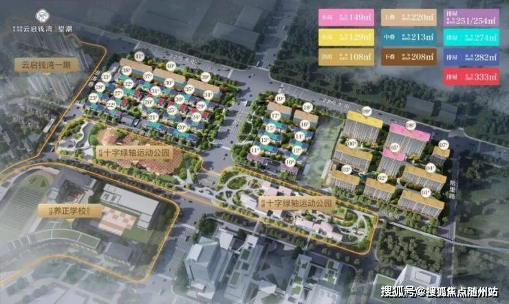 项目位于东部湾新城金沙嘴板块,距离钱塘江最近仅约200米,真正的一线沿江。云启钱湾片区总体体量超50万方,二期望潮住宅占地面积约6万方,住宅建筑面积约15万方,容积率低密区仅约1.1,规划了约251-335㎡江湾大宅、208-220㎡叠墅、129-149㎡改善级小高层,满足不同家庭的居住需求。