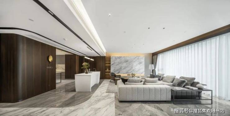 至于装标,虽都远比住宅耐看,真做到“不惜一掷千金”的却也罕见。圆弧转角的大面玻璃,横向流动的银灰色铝板,涟漪层层,光泽璨璨,像是妙手剪裁的运河之水,又像极了曼哈顿当红豪宅Summit New York,敞开怀抱迎向灿烂阳光。