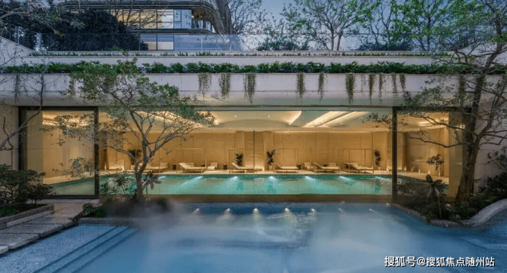 ① 公区部分。蕙澜月华虽体量不大,却规划有下沉式会所、恒温泳池及全域风雨连廊。