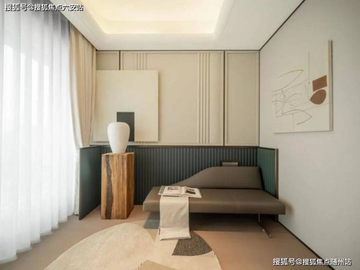 充满天马行空的想象力,三层圆弧设计搭配金属线条,在数学上是双曲马鞍面,单曲线就已经够复杂了,双曲线的精度要求很高,造价是普通的几倍。书房的吊顶用平滑的曲线过渡,完美消融了梁的存在感。餐厅的圆角矩形下挂吊顶则是他的特色,辅以吊顶映射的星光点点,如梦如幻。甚至连电梯厅,也从不循规蹈矩,将柔美的曲线运用到了公区,蛋壳般笼罩的米白色泛光让人回家很温暖。