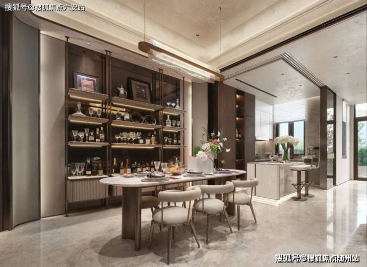 清水玉吧台与静雅棕地面映衬的相得益彰,使得整个空间既时尚又精致,与后方的陈列柜形成一处气质优渥的品酒区,小酌一杯,欣赏着女主人收藏的艺术画作,惬意又美好。🔻售楼热线:☎ 400 832 8823「售楼处」☎〢网上售楼中心〢🔻