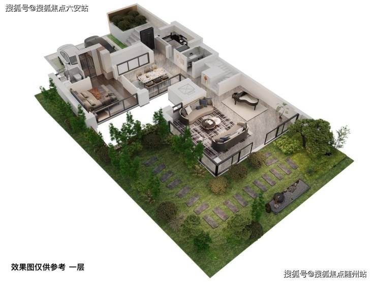 麓园映湖通过360°围合式设计,为每一户打造了前庭、后院、下沉式庭院及空中露台的多重景观空间。下沉庭院与私家泳池的设计,让业主在私属领域内即可享受与自然交互的乐趣。