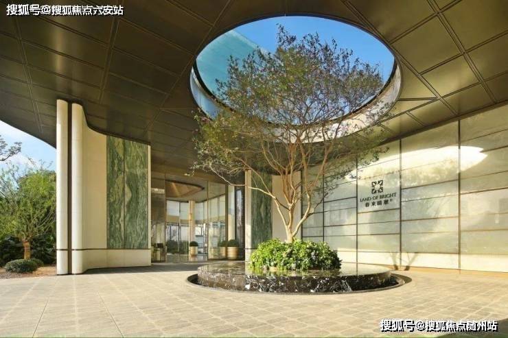 园林景观由蓝颂景观设计院操刀,借西侧钱塘江景引水入园,山景与水景的巧妙交融,形成一幅流动的山水长卷。泳池休闲综合体、活力环绕健身跑道、童话剧场与春知学堂的植入,让“酒店式奢华美学”与“游园之趣”并存。而约7米高的主入口,贝金米黄石材与古铜色金属板的冷暖碰撞,圆形镂空穹顶下的紫薇树,更将“光明与希望”的意境渲染至极致。