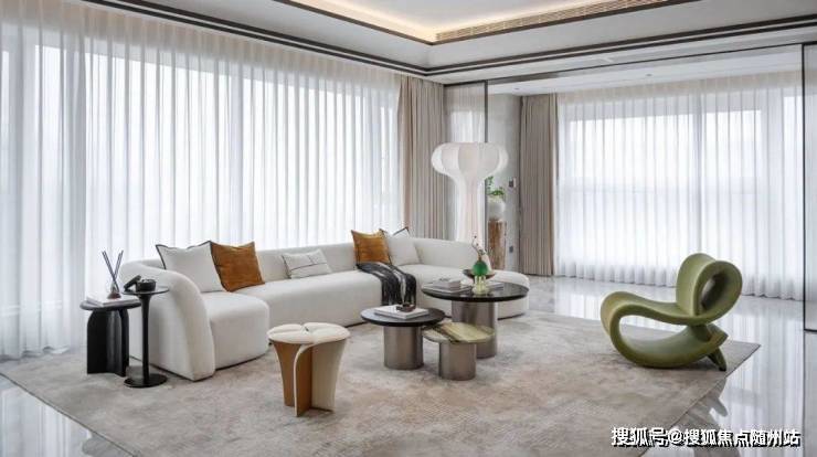 在示范区,挑选了琚宾设计的WAVE1960样板房,来感受一下大师以ARTDECO的对称、几何美学,构建起的摩登艺术空间。