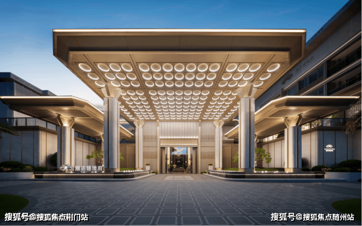 以“金镶玉”的温润和“天圆地方”的形制, 塑造板块首个约9米高、30米超宽幅奢尺门庭,古意今形,入微至臻,彰显江南望族的尊贵礼序,绎当代建筑美学盛宴。