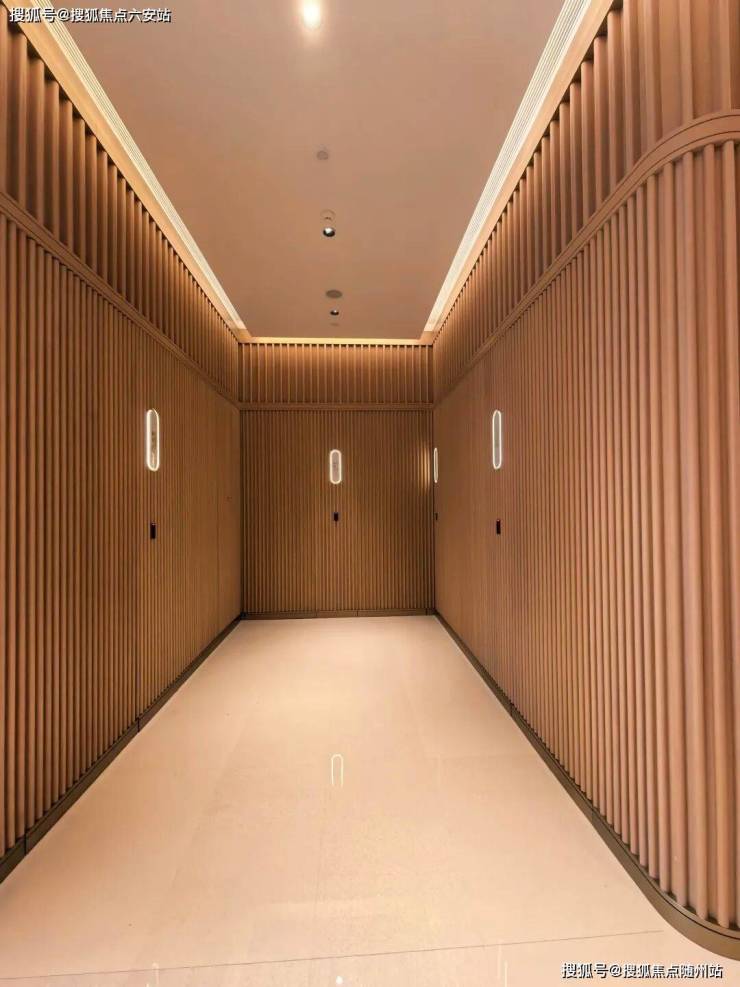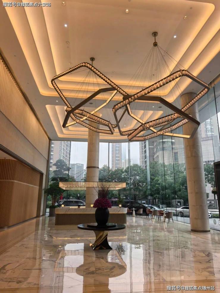 在公区配套上,建工倒是很舍得下本,装修设计基本就是在对标五星级酒店的标准。首先就是这个一楼大堂,豪华的大挑空、硕大的吊灯,还有精致的地面石材拼花,这一标准竟然也沿用在了地下车库的入户大堂,一下子把杭州地下车库入户大堂卷出了新的高度!