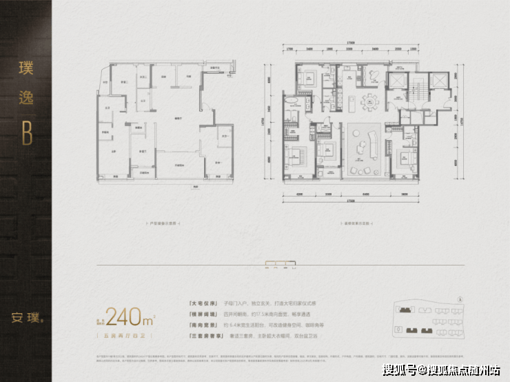 建面约240㎡、280㎡的五房,都罕见地做了南厅布局,LDKB一体的大公区,面积都超过了70㎡!
