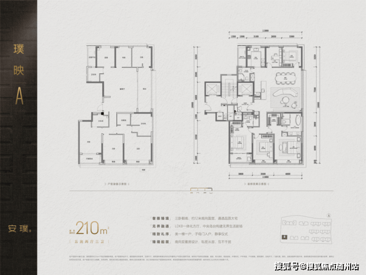 安璞的户型设计充分考虑了高端改善人群的需求,高层主力户型约210-280㎡,顶层跃层约275-346㎡,排屋约410-510㎡,所有户型均经过精心设计,实现空间利用最大化。