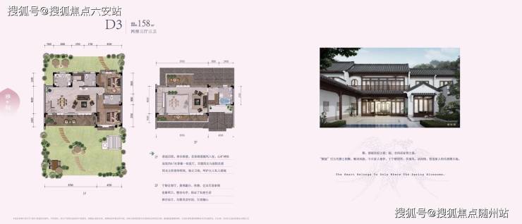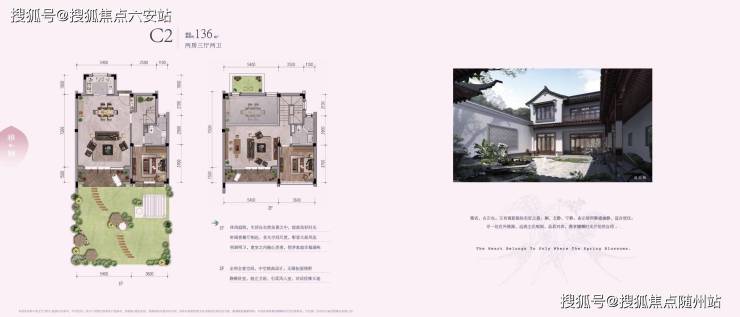建筑采用粉墙黛瓦、庭院深深等传统元素,结合现代大开间、短进深设计,打造纯中式别墅社区,联排别墅层高6.6米,配备私家停车位及合围式庭院。