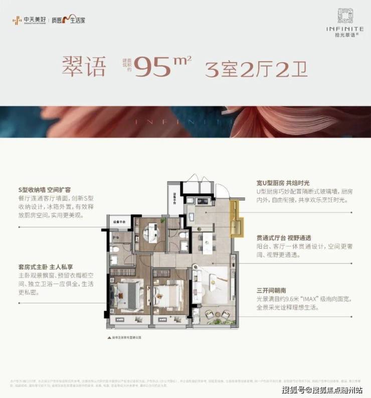主力户型为建筑面积约95平方米与103平方米的精装三房。面积段设计精准覆盖首改及品质刚需家庭的主流需求。