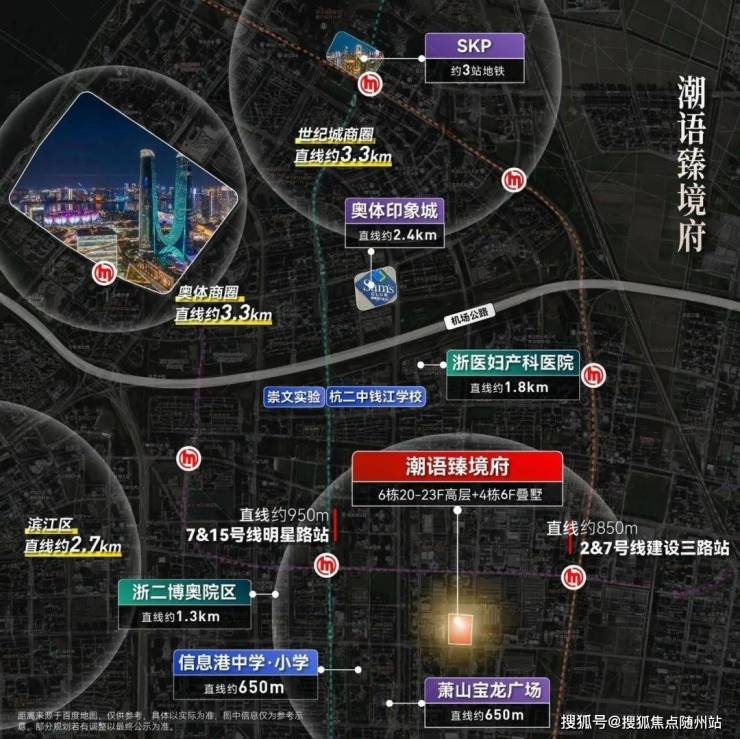 交通方面,双地铁(2/7号线)、“三横三纵”密集路网,使你便利触达全城;直线距离约900米为地铁7号线建设三路站,5站可直达钱江世纪城。约600米有萧山宝龙广场。