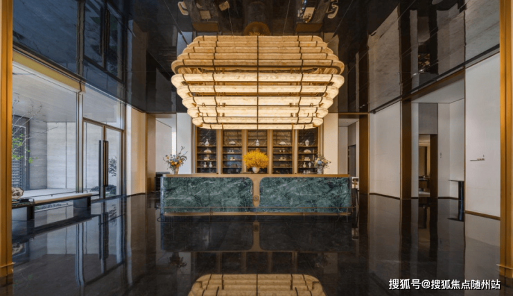 三进归家礼序,镜像西湖郭庄。一进威仪,宽约53米(含景墙)的歇山顶大门,形制溯源乾清门,两侧镶嵌蓝翡翠奢石,鲁大东亲笔题匾,哑光铜狮肃然守护。二进迎客,取意《柳浪闻莺》,勾勒出“深柳叫黄鹂,清音入空翠”的灵动画面。三进游园,把《曲院风荷》与《双峰插云》的画境,转译为约500方下沉庭院,仿佛收藏了西湖一角。呼应传统文化的群贤雅集意蕴,打造约1800㎡全维会所(含下沉庭院)和约500㎡架空层泛会所,户均会所面积约10.9㎡,拓展社交圈层和志趣。