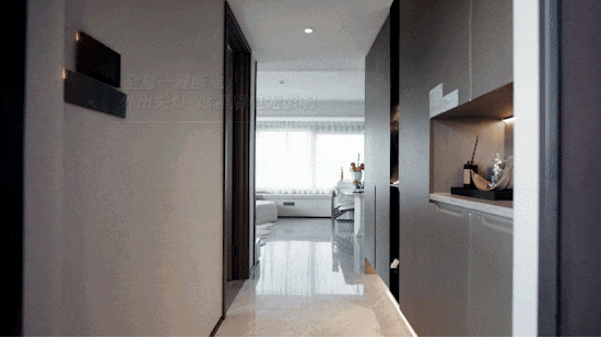 总有一束光为你守候,入户吊顶处的感应灯,让打开家门的瞬间,告别黑暗中摸索开关的窘境,归家即感暖心。离家时,只需轻按一键断电开关,即可切断室内所有照明灯,冰箱用电无影响;收纳柜空间的预留,让鞋履、雨伞等各归其位。
