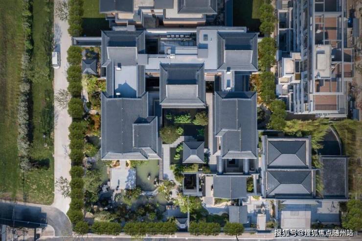 从整个动线布局来看,设计采用了经典的“巷门-院门-宅门”三进制院落格局,以江南院落再现东方传统礼序。从园区巷门开始层层递进,到一户一府的院门,再至入户宅门,表现出大户人家的归家气场,带来一种尊贵秩序的仪式感,也将中式生活的画卷次第展开。