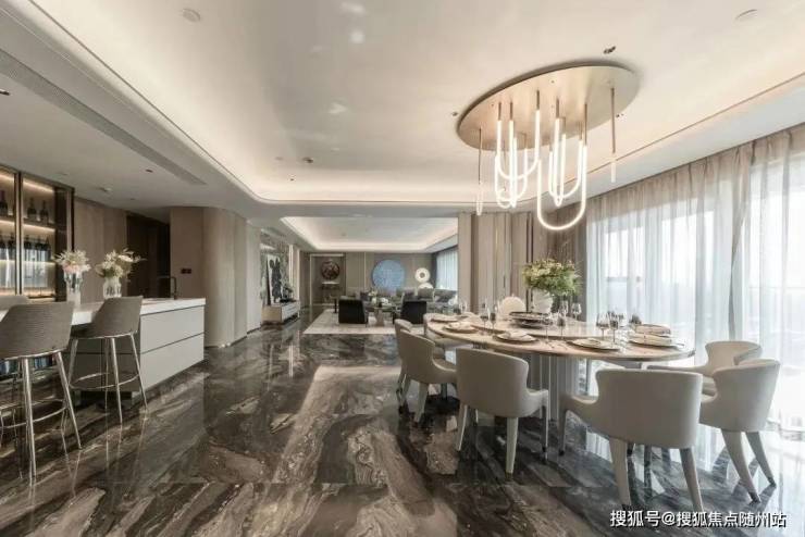 其中,部分能做到约13.7米的一体化双厅+岛台,每一个户型公区都有接近100㎡,加之南北通透的设计,让整个空间都格外豁达。这里,就是为party而生,不论是与合作伙伴开一瓶香槟,还是组局周末派对,都能一一适配。