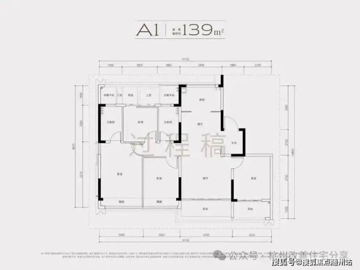 建面约139方A1户型,四房两厅两卫
